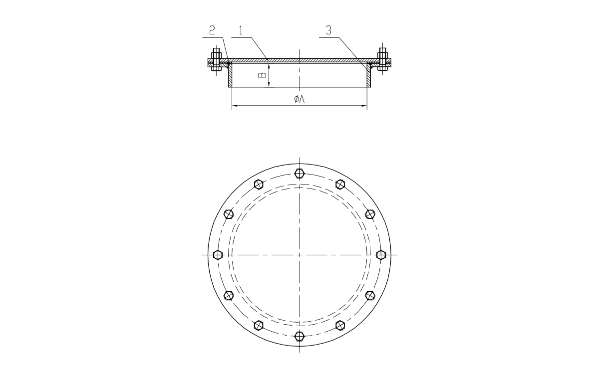 Die erhöhten Reinigungsluken DF-154-14 mit mehreren Bolzen bestehen aus Kohlenstoffstahl und können auch aus Edelstahl hergestellt werden.
